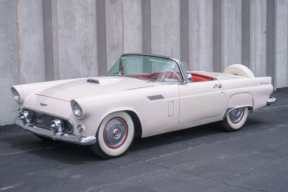 1956 Ford Thunderbird (Colonial White) Summary Beautifully restored ’56 Thunderbird finished in Colonial White with matching porthole hardtop. Former museum car from Tucson, AZ; well-maintained with tasteful upgrades including dual carburetors and front disc brakes. Engine & Driveline 312 CID V8 with dual four-barrel carburetors Three-speed automatic transmission 12-volt electrical system Dual rear-exit exhausts Power steering and upgraded front disc brakes Chassis & Features Continental rear bumper-style spare 15″ wheels with wire hubcaps Michelin P215/75R15 whitewall tires Clean underbody and refinished chassis Interior Red and white two-tone interior Power windows and power seat Aftermarket AM/FM radio with classic styling White three-spoke steering wheel, red dashboard, and red carpet Fuel gauge and tach inoperative Condition Excellent paint and trim with minor imperfections Runs strong; smooth-shifting automatic Clock inop; otherwise gauges functional Well-cared-for and lightly used — ideal for shows or long drives Odometer: 66,917 miles
